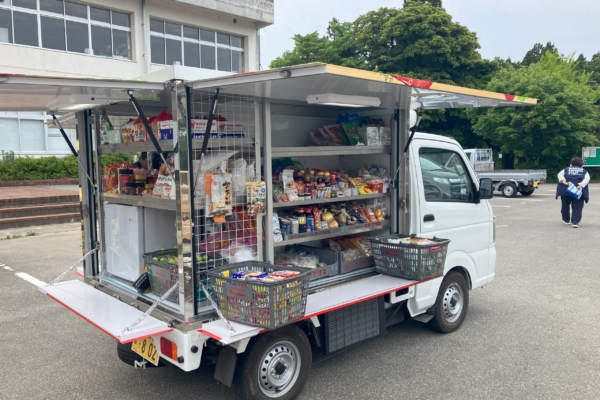 能登学舎グラウンドの仮設住宅で移動販売が行われています
